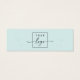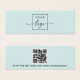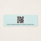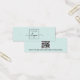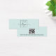 Mini-carte d'affichage de produit bleu aqua clair avec modèle de logo personnalisé centré et code QR sur le dos. Les repères d'oreille peuvent être ajustés en ajoutant et en enlevant des espaces dans le champ modèle, et en déplaçant l'élément entier dans l'outil de conception.