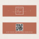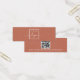 Mini carte d'affichage de produit en terre cuite marron avec modèle de logo personnalisé centré et code QR sur le dos. Les repères d'oreille peuvent être ajustés en ajoutant et en enlevant des espaces dans le champ modèle, et en déplaçant l'élément entier dans l'outil de conception.
