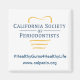 La California Society of Periodontists (CSP) rappelle au public que mars est le mois de sensibilisation aux maladies des gencives en Californie. La maladie parodontale (gomme) est une maladie inflammatoire qui affecte les gencives, les os et les structures de soutien des dents et est la principale cause de perte de dents chez les adultes. Rejoignez notre cause et aidez à sensibiliser en achetant et en affichant cet aimant de 2 po x 2 po.