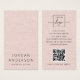 Cartes de visite modernes et verticaux avec votre nom et titre sur le devant sur un lin clair rose pâle imprimé look arrière - plan. Champs de modèle personnalisables pour vos coordonnées et votre logo au dos. Vous pouvez déplacer et redimensionner des éléments à l'aide de l'outil de conception.