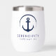 Un chic tondeuse thermale sur le thème nautique pour votre bateau qui présente une illustration bleu marine moderne d'une ancre que vous pouvez garder ou remplacer par le logo de votre bateau. Personnalisez avec le nom et l'emplacement de votre bateau dans une simple typographie bleu marine.