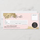 Brosses en feuille d'or moderne noir et blanc simple certificat cadeau chic simple, ajoutez votre logo sur éditable pastel blush rose.