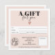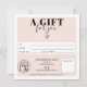 Un simple certificat cadeau carré pastel moderne rose vif, ajoutez votre logo, avec un coeur d'or rose. Bon cadeau d'anniversaire ou de Noël idéal.