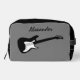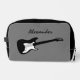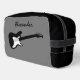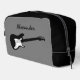 Logo de guitare en roche électrique sac de toilette personnalisé pour guitariste ou mélomane amoureux. Accessoire de salle de bain de nom personnalisé cool. Article amusant pour guitariste, professeur de musique, professeur d'école de musique, musicien, artiste, interprète, étudiant, propriétaire de magasin, etc. Élégant modèle de typographie de script. Design d'instrument moderne avec nom. Couleurs noir et blanc ou personnalisées. Grand cadeau pour Fête des pères ou anniversaire.