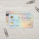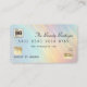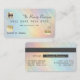 Ce carte de visite cool et tendance de carte de crédit est parfait pour tous les professionnels, tels que les maquilleurs, coiffeurs, artistes fouettés, et bien d'autres. Il représente un élégant hologramme irisé arc-en-ciel avec des accents faux or. C'est élégant, chic, glamour et élégant. Cette carte offre également un endroit pour télécharger votre logo sur le design.