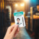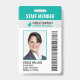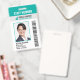 Une carte d'identité d'employé moderne. Le design est soigné et comporte votre logo d'entreprise, code-barres, nom commercial et slogan. Il montre une photo d'identité d'employé de bonne taille. Les informations peuvent être personnalisées et comprennent jusqu'à présent le nom de l'employé, le numéro de badge, ainsi que la date d'émission et la date d'expiration. Une barre soignée en haut indique la fonction ou l'occupation de l'employé en lettres grasses et grandes. Cette barre peut également être utilisée pour afficher un département si vous le préférez.