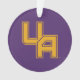 Le logo de l'Université d'Albany est orné d'un design "UA" audacieux et dynamique, rendu dans le violet signature de l'université et tracé avec une frontière dorée frappante. Les lettres angulaires, en bloc, donnent au logo une apparence forte et autoritaire, parfaite pour représenter la fierté et l'identité de l'école. La structure symétrique et géométrique des lettres transporte une esthétique moderne et professionnelle.