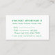Elégant et moderne Dentist rendez-vous rappel carte de visite avec logo menthe frais dent dent, texte que vous pouvez customiser et carte de design à deux côtés, ombre verte avec éclaboussure d'eau sur arrière - plan blanc. Vous pouvez facilement utiliser comme carte de rappel d'affaires et de rendez-vous en une . Cette carte mignonne est conçue pour un dentiste, un cabinet dentaire, un centre de santé dentaire, un hôpital, un orthodontiste ou un chirurgien buccal.