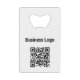 Ouverture minimaliste minimaliste de bouteille d'affaires personnalisée avec logo d'entreprise et code QR. Personnalisez pour créer votre propre design.