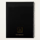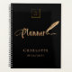 Un arrière - plan noir chic, décoré d'un stylo en plumes. Personnalisez et ajoutez votre entreprise, le logo de l'entreprise, le nom et l'année. Texte en or : Planificateur