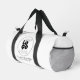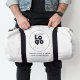 Logo d'entreprise noir personnalisé sur le sac blanc Duffel - Téléchargez simplement votre logo d'entreprise noir ou foncé graphique ou image à ce modèle avec deux lignes de texte customisé