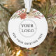Ajoutez votre logo d'entreprise et votre texte personnalisé à cet ornement de Noël rond simple dans un style moderne et minimaliste. Parfait service promotionnel de vacances. Facile à customiser. Commandez aujourd'hui !