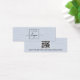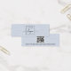Carte d'affichage de produit mini-oreilles avec code QR et modèle logo personnalisé sur une image bleue poussiéreuse IMPRIMÉE de lin. Les repères d'oreille peuvent être ajustés en ajoutant et en enlevant des espaces dans le champ modèle, et en déplaçant l'élément entier dans l'outil de conception.