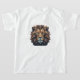 Le logo du lion est bien visible au centre de la chemise. Le logo peut être une illustration détaillée de la tête d'un lion, avec une crinière flottante et une expression puissante. Sinon, il pourrait s'agir d'un design plus stylisé et minimaliste, axé sur la silhouette du lion ou sur une seule caractéristique forte comme son rugissement. Les couleurs sont audacieuses et impeccables. Vous pourriez utiliser des couleurs classiques comme l'or ou l'orange pour le lion, en contraste avec une chemise noire ou blanche pour un look à fort impact.