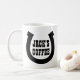 Logo Lucky horseshoe tasse de café personnalisée. Personnalisez avec du texte, un nombre de chance ou un monogramme. Couleurs noir et blanc ou personnalisées. Idéal pour les propriétaires de ferme ou de ranch, cavalier, amoureux des chevaux, fermier, cowboy, propriétaire de grotte homme, collègue, père etc. Police de typographie occidentale. Imprimé sur deux côtés.