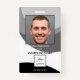 Un badge photo avec un design noir et blanc avec un espace pour votre photo et logo personnalisé. À l'arrière, vous pouvez ajouter un code à barres personnalisé ou un code QR ainsi que des textes supplémentaires ou supprimer les modèles. Vous pouvez également copier et coller le design et les photos de l'avant vers l'arrière si vous le souhaitez.