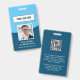 Un badge d'identification photo minimaliste et moderne pour les professionnels de l'entreprise et les employés d'entreprise avec un thème bleu. Customisez avec le logo de votre entreprise et la photo de l'employé, changez la couleur de l'arrière - plan ou partez comme indiqué ici. Ajoutez votre URL pour le code QR sur le dos ou supprimez si nécessaire. Il y a une zone de texte pour ajouter des informations supplémentaires au verso. Veuillez naviguer dans la collection d'insignes d'employé/d'entreprise de votre nom d'employé.