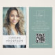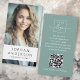 Moderne, poussiéreux vert marin ou couleur personnalisée, cartes de visite verticaux avec votre nom et titre sur l'avant et champs modèle personnalisables pour vos coordonnées, logo et code QR sur l'arrière. Vous pouvez modifier les couleurs des arrière - plans et des polices, déplacer et redimensionner les éléments à l'aide de l'outil de conception.