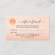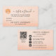 Elégant carte de visite de référence avec votre propre logo (si vous remplacez l'image du soleil) sur un élégant design arrière - plan rose pêche. Au verso se trouve un modèle de code QR ainsi qu'une ligne optionnelle d'icônes de média. Un grand carte de visite pour un salon de beauté ou d'autres professionnels de la beauté.