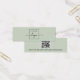 Mini carte d'affichage de produit avec modèle de logo personnalisé centré et code QR sur le dos. Les repères d'oreille peuvent être ajustés en ajoutant et en enlevant des espaces dans le champ modèle, et en déplaçant l'élément entier dans l'outil de conception.