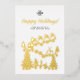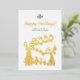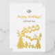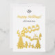 Souhaitez des vacances heureuses à vos associés d'affaires et à vos employés avec cette élégante carte de vacances simple, moderne mais toujours classique. Doté de votre logo personnalisé, il créera un sentiment de vacances parfait pour tous ceux qui le reçoivent. Cette carte épurée classe et festive a une scène de Noël parfaite avec Père Noël et des rennes volant au-dessus du graphique des pins, avec de vrais éléments pressés en feuille d'or sur un arrière - plan blanc propre, que vous pouvez changer à n'importe quelle autre couleur pour correspondre à votre schéma de couleurs d'entreprise, et Happy Holidays texte également en or. Le côté arrière contient du texte personnalisé. Ce modèle de carte Happy Holidays est prêt pour votre personnalisation en ligne. La feuille d'or peut être changée en or ou argent rose.