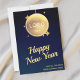 Une carte de voeux de Nouvel An ornée d'une boule de disco dorée sur fond bleu foncé, permettant d'ajouter votre logo entreprise / entreprise, créant un accueil vraiment festif pour le Nouvel An.