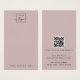 Rose léger taupe ou couleur personnalisée carte d'affichage du produit d'oreille verticale avec logo personnalisé et code QR. Design élégant et minimal.