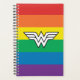 Pride DC | Wonder Logo emblématique de la femme avec des couches de couleurs arc-en-ciel à l'intérieur.