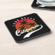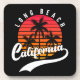 Long dessous de verre de plage au design rétro qui dispose d'un coucher de soleil et de palmiers sur arrière - plan noir (personnalisable couleur de gros). Cette conception a également la Californie dans une police manuscrite avec un glyphe de queue d'escroc pour ce look rétro élégant. Ces dessous de verre s'adressent à vous si vous venez de Long Beach ou si vous pouvez en faire un cadeau ou un souvenir pour quelqu'un.