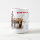 Conception de tasse unique avec du bétail Texas Longhorn et une pompe à vent agricole. Affirme avec audace Fort Worth, Texas. Peut être changé en n'importe quelle ville du Texas, ou changer au nom d'une personne, si désiré.