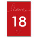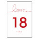 Loopy Love Red Heart Mariage Numéro de table Carte