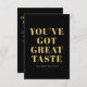 Petite entreprise noir et or vous avez un grand goût carte de remerciements. Customisez le texte, les couleurs, les polices à vos souhaits.