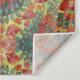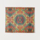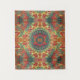 le motif abstrait de mandala fait à partir des champignons oranges, des fleurs rouges et du feuille vert sur un arrière - plan jaune fait cette tapisserie élégante pour accrocher sur n'importe quel mur dans votre maison.