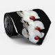 Le blanc dramatique avec les fleurs rouges d'orchidée ornent cette cravate dans le motif répétitif. Dramatique et d'une manière éblouissante élégant.