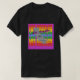 The T-shirt design saying "1850," "The City of Angels" and "Los Angeles" is colored black. It has red, orange, yellow, green, blue, purple, black, grey and white ink in it. It is made out of 100% cotton.