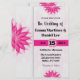Une faire-part de mariage visuellement époustouflante avec un design délicat de fleurs de lotus roses. L'élégante disposition de la carte intègre un arrière - plan rose doux qui complète le rose vif des fleurs de lotus. Un ruban rouge vif ajoute une touche d'élégance, créant une atmosphère harmonieuse et accueillante. L'ensemble est conçu de façon à transmettre un sentiment de sérénité, d'amour et de nouveaux débuts, ce qui en fait un lieu idéal pour une célébration mariage romantique.