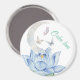 Cet aimant mariage rond présente une aquarelle sereine avec une fleur de lotus bleu doux, des papillons délicats et l'inscription romantique "Amour calme". Parfait comme une faveur de mariage ou un cadeau de remise en forme, cet aimant ajoute une touche paisible et élégante à votre célébration. Un beau gardien pour les invités à chérir et à afficher