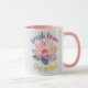 Une tasse à café avec une fleur de lotus aquarelle, avec l'expression "Break from the Grind" centrée autour de l'image. La fleur de lotus, connue pour sa beauté et sa résilience, symbolise la pureté, l'illumination et l'éveil spirituel, suggérant une fuite pacifique du stress quotidien.