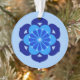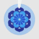 Le mandala japonais design ornement acrylique qui représente une fleur de lotus stylisée, symbolisant la pureté, éveil spirituel et fidélité - fleur dans indigo profond et des tons doux de bleu sur un arrière - plan bleu ciel clair