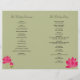 Créez vos propres programmes de mariage de qualité professionnelle avec ce modèle de programme bi-pli facile à utiliser. Ce programme simple mais élégant comprend un trio de fleurs de lotus sur la couverture. Remplacez simplement l'exemple de texte par vos informations mariages. Mesure papier 8-1/2" x 11" Vous devrez plier les programmes en 8-1/2" x 5-1/2". Si vous avez besoin de customiser davantage l'espacement et les tailles du texte, cliquez simplement sur le bouton "Customisez-le!". N'hésitez pas à me contacter directement si vous avez besoin d'aide pour écrire le programme.