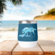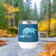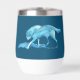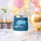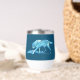 Un loup bleu stylisé (Canis lupus) projette une ombre en traversant un terrain enneigé. Customisez en ajoutant votre propre texte à l'envers.