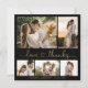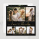 Elégant, moderne Mariage de script de coeur 5 Photo Collage Carte de remerciements en noir et or. Modèle de carte mariage élégant et minimaliste avec cinq (5) photos en grille sur le devant et une (1) photo sur le côté arrière. "Amour et merci" texte dans une calligraphie à la main cursive lettrée police de script de coeur mignon avec la queue de swash. Personnalisez avec votre nom et message de remerciement. Si vous avez besoin d'aide ou d'un article correspondant, veuillez contacter le concepteur !