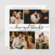 Élégant "Amour et merci" Script 4 Photo Collage Mariage Carte de remerciements. Modèle de carte de remerciements mariage moderne et design avec quatre (4) photos sur le devant et une photo sur le côté arrière. Avec le texte "Amour et merci" dans une tourbillonnant police de typographie en noir sur arrière - plan blanc. Personnalisez le nom personnalisé et le message de remerciement. Si vous préférez écrire votre note à la main, supprimez simplement l'exemple de texte pour gagner de l'espace. Si vous avez besoin d'aide ou d'un article correspondant, veuillez contacter le concepteur !