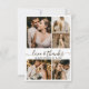 Elégant, Minimaliste Main Lettré Mariage 6 Photo Collage Merci Cartes. Modèle carte de remerciements mariage moderne avec six photos. Avec le texte "Amour et merci" dans une tourbillonnant main lettrée en noir sur arrière - plan blanc. Ajoutez votre nom, vos photos et votre message de remerciement. Si vous préférez écrire votre note à la main, supprimez simplement l'exemple de texte pour gagner de l'espace. Veuillez me contacter si vous avez besoin d'aide pour cette conception.