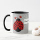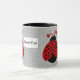 Cette Mug Love Bug présente une lovebug mignonne sur un arrière - plan de coeur gris.
