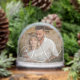 Style moderne élégant calligraphie script coeur photo personnalisée boule de neige. +++++++++++++++++++ Il pourrait s'agir d'un cadeau parfait pour Valentine, fiançailles, mariage ou anniversaire de relation.