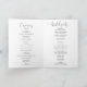 Ce programme de mariage plié à l'écriture fantaisie est parfait pour un mariage moderne. Le design sobre et élégant présente une typographie de script classique et soignée en gris et blanc. Incluez un devis ou un court message, une commande de service, une fête de mariage et un message de remerciement.