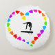 Beau oreiller rond. Coeurs colorés, dans un design en forme de coeur entourent une belle silhouette de gymnastique sur le faisceau de balance! Cela fait un grand cadeau pour n'importe quel gymnaste!