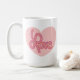 This Valentine’s Day mug features a soft pink heart set against a white background, with the playful word “Love” flowing across the center in colorful, layered lettering. The rounded, hand-drawn style gives the design a warm and cheerful feel, while the heart shape adds a clear message of love and affection. It’s a sweet, modern design that makes the mug feel personal—perfect for celebrating someone special with every sip. Hand drawn by Petal Envy.