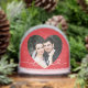 Make a bold romantic statement with this vibrant red snow globe featuring your photo framed inside a large heart cutout with "Love" in elegant white script. The back displays a second photo for a two-sided keepsake bursting with personality. A standout Valentine's Day gift, anniversary surprise, or fun romantic memento for the couple who loves color. All text and photos are fully customizable.
